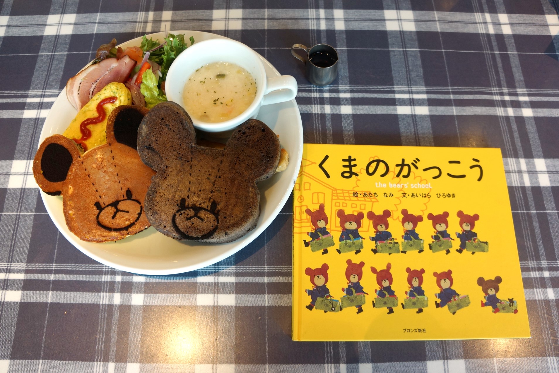 J.S. PANCAKE CAFE 中野セントラルパーク店は、絵本「くまのがっこう」と期間限定でコラボレーション中です。 くまのがっこうとのコラボは7店舗で展開されており、都内では中野セントラルパーク店のみで実施されているイベントで、5月6日(月)まで限定のパンケーキが提供されています。 コラボパンケーキは『ジャッキー&デイビッドのショコラベリーパンケーキ』と『ジャッキー&デイビッドのパンケーキプレート』の2種類で、今回は『ジャッキー&デイビッドのパンケーキプレート』を頂いて来ましたので、皆さんにキュートなパンケーキをご紹介します。 『ジャッキー&デイビッドのパンケーキプレート』は、白いデイビッドがプレーンパンケーキ、茶色のジャッキーがココアで色づけされたパンケーキで、お顔はココアパウダーで表現されています。 ふわふわで厚みのあるパンケーキですが、可愛すぎてどこから食べたら良いのか困っちゃいます! プレートには、ほうれん草のオムレツ、お豆のスープ、サーモンのサラダ、ベーコン、フライドポテトが並び、これらの料理は絵本に登場するものを集めた、ファンには嬉しいこだわりとなっています。 プレートの料理をパンケーキと合わせて食べると主食に、添えられたメープルシロップをかければデザートになり、全体的にボリュームのある一皿となっています。 また料理だけではなく、お店の中も外も「ジャッキー&デイビッド」一色に! 中野セントラルパーク店はフラッグシップショップとして、店内のいたるところでジャッキーやデイビッドが楽しそうにしている姿が見られ、まるで自分も絵本の世界に飛び込んだような気持になりました。 J.S. PANCAKE CAFE中野セントラルパーク店の店長の安部さんは「お客様は、お子様連れや大人の女性の方が多くいらっしゃっています。中には“くまのがっこう”のグッズを持参で来てくれる方もいて、非常に人気のイベントとなっております。期間の5月6日までに是非いらして頂ければと思います。」と今日もお客様を歓迎しています。 J.S. PANCAKE CAFEでは、『STRAWBERRY LOVERS』という苺をふんだんに使ったフェアも同時開催中。 フェアなどの詳しい内容はWEBサイトをご確認ください。 ●J.S. PANCAKE CAFE http://blog.baycrews.co.jp/js-pancake/ ●くまのがっこう https://the-bears-school.com/