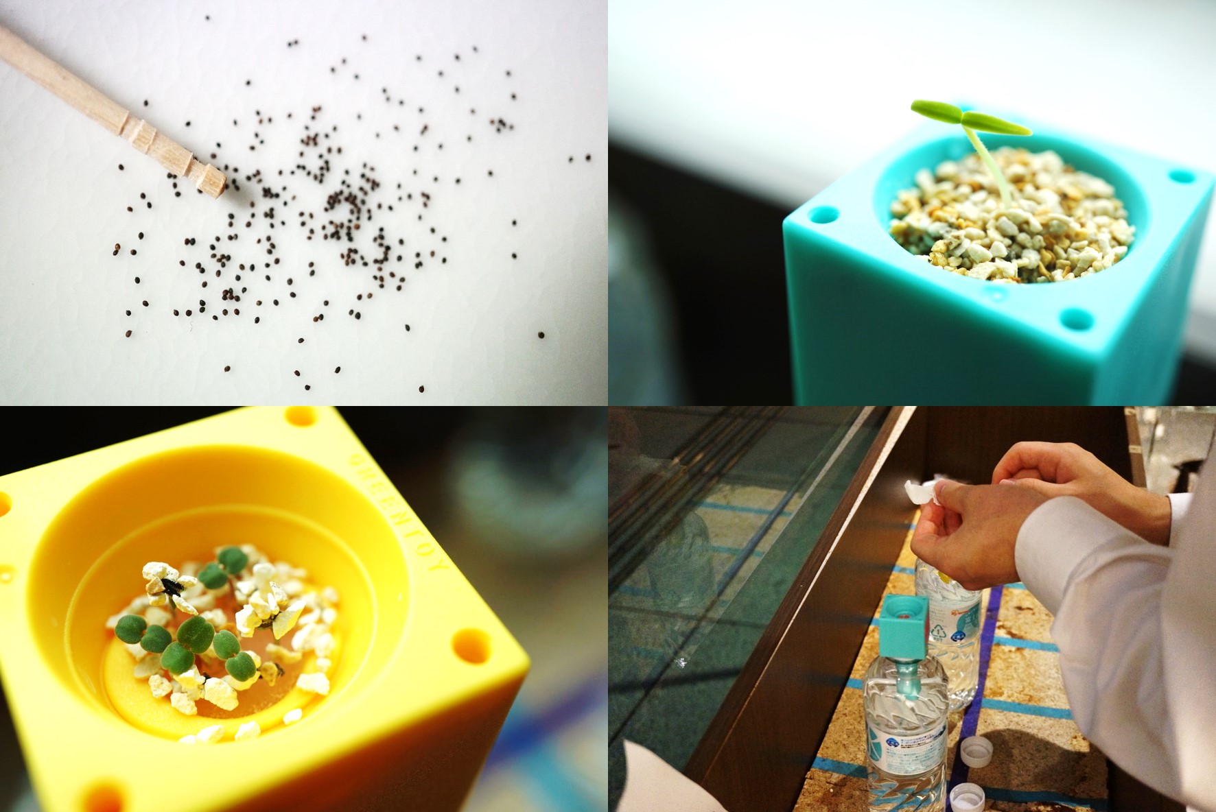 9月から秋の園芸部がスタートしました。 ハーブとシシトウ、秋の味覚シイタケ栽培を行います。 中野セントラルパークで働くオフィスワーカーが集い、植物を育てて楽しむ『園芸部』。 今回育てるのはハーブとシシトウで、ハーブはミントかレモンバームのどちらか好きな方を選んで育てるとのことで、さっそく「たねまき会」から活動がスタートしました。 タネは植物の種類によって形状が大きなものから、細かなものまで様々です。 今回は特に細かな種類のタネを引き当ててしまったようで、爪楊枝の先よりもずっと小さなミントのタネは、砂粒と区別がつかないほどの小ささ。 たねまきは集中力と繊細な動作を要する作業ですが、いつもよりさらに部員の皆さんには頑張っていただきました。 部員の皆さんがまいたタネは1週間ほどで発芽し、生まれたばかりの可愛い芽たちがピョコピョコと出てきています。 これから年末頃まで部員さんと一緒にハーブとシシトウを育てていき、後半は人気のシイタケ栽培、そして生ハーブをハーブティーにして楽しむ予定なので、そちらの様子なども今後お知らせできればと思います。 園芸部では野菜やハーブの栽培の時に、ペットボトルで育てる水耕栽培キットを使っています。 土を使わないのでスーツやスカート、革靴やパンプスといった働く服装でも汚れることがなく気軽に参加でき、お世話も週1回ほどで良いのが特徴です。 仕事の合間や出勤・退勤時にサっと寄って、軽くお世話ができる方法なので働きながらでも続けやすく、日々通うオフィスという場所だからこそ植物の成長も分かりやすく、仲間同士でも参加しやすい内容となっています。 現在も定員に空きがあるので、途中参加のオフィスワーカーの方を募集中とのことですので、詳しくはサウス エントランスの南側にある、園芸部の栽培場所のちらしなどをご確認ください。