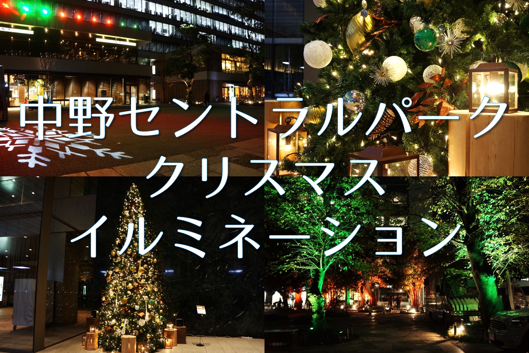 12月1日から中野セントラルパーク屋外、パークアベニューのイルミネーションがはじまりました。 イルミネーションは季節や時間によってその時にしか見られない特別な演出も行われる予定で、12月は期間限定のクリスマスの特別演出が行われます。 中野セントラルパークでは、日本の四季から生み出されたとされる「伝統の色」を季節のテーマカラーに使ったイルミネーションが年間を通じ楽しむことができるようになりました。 冬季期間は全体的に青色のグラデーションを基調としたイルミネーションが実施され、露草色・薄藍・紺碧・杜若色と繊細な色の変化をお楽しみ頂けます。 タイル張りの歩道には象徴的なイラストや文字が、まるで主役に向けられるスポットライトのように動き出し、時期によって色々なものが浮かび上がります。また今の時期は、30分に1度特別演出としてクリスマスカラーの赤と緑へ変化し、スポットライトもクリスマスバージョンに変わりますので、特別な時間を大切な方と一緒に見て頂ければと思います。 イルミネーションは今後も季節ごとに装いを変え、夜の中野セントラルパークを輝かせる予定ですので、新しい季節の訪れとともにまた詳しくご紹介したいと思います。 サウスエントランスには、恒例のクリスマスツリーが登場しました! こちらは一般の方も撮影可能なスポットとなっておりますので、キラキラのツリーで気分を上げたい時などにいらしてください。 ツリーの周辺は天然エッセンシャルオイル100%のアロマ空間となっており、配合もクリスマスを感じるような香りに新調されました。 香りには様々な効能があり、今回は「心に解放感をもたらす香り」となっていますので、ご自分の感覚をもとに体験してみてくださいね。 クリスマスを感じるようになった中野セントラルパークで、皆様をお待ちしております。 ★ 中野セントラルパーク イルミネーション情報 ★ ☆点灯時間 / 毎日17:00~23:00 (12月1日~2月末日) ☆クリスマス特別演出について ・クリスマス特別演出期間 / 12月25日まで ・特別演出時間 / 17:00、17:30、18:00、18:30、19:00、19:30、20:00、20:30、21:00、21:30、22:00、22:30と30分に1度の頻度で、約5分間の演出予定(日曜のみ最終演出が21:00になります) ☆クリスマス以降の12/26(日)~2月末までは、青を基調としたWinterイルミネーションを毎日見ることができます。 ※点灯時間や演出時間は変更となる場合がございますのでご了承ください。