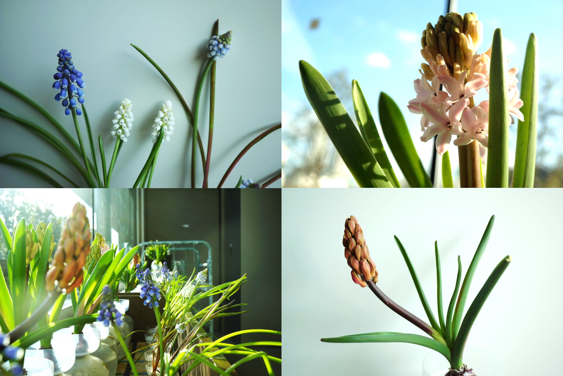 中野セントラルパークで働く人なら誰でも参加可能な大人の部活動「園芸部」。 春の園芸部では恒例の球根の水栽培を行っており、お花が開花しはじめました! 色とりどりのヒヤシンス、そして小さいムスカリをお披露目中です。 1月から始まった園芸部の活動は、寒いサウス地下駐車場にてひっそりと行われてきました。 春咲きの球根は、寒い冬の季節を体感しないと花がつきにくい性質があります。 冬の空気が入り込む駐車場での作業は、部員さんも大変だったかと思いますが、球根たちはすくすく成長し、満を持して暖かいサウスエントランスに2月中旬に移動させました。 寒い地下から暖かいエントランスに移動させることで、球根たちは冬が終わり春が来たと錯覚し、花を咲かせる準備を始めます。 地下では葉が蕾を守るように閉じていましたが、エントランスで太陽光に当たり、葉が開いて蕾が伸び、蕾が成長します。 エントランスに移動させてから約2週間後、まずはムスカリの花が開花! 今年のムスカリは青・水色・白など、どんな色が咲くかお楽しみの球根でした。 蕾が何本か出ているムスカリもあるので、花期が長めに楽しめそうで嬉しいです。ムスカリに続き、園芸部では久しぶりに栽培を行ったヒヤシンスも咲き始めました! ゴージャスな雰囲気の花びらと良い香りが特徴的なお花で、黄色・オレンジ・薄ピンク・濃ピンク色の花が咲く予定です。 ヒヤシンスがたくさん咲くと、エントランスの一角がヒヤシンスの香水のような香りで包まれるので、そちらも楽しんで頂ければと思います。園芸部では1年を通して様々な植物を育てていますが、お花を中心として育てるのはこの時期だけとなり、それ以外では野菜やハーブといった食べられる植物が中心となります。 園芸部の部員さんの中でもお花を育てると「食べられない植物だからなぁ…と思っていたのですが、育ててみるとお花がとっても可愛くて大好きになりました!」といった意見がとても多いです。 作業中の部員さんを見ていると、自然と笑みがこぼれ、お花を扱う時に優しさを感じ、皆さん自分の子どもの成長を見守るような気持ちでお世話をしているのだと思いました。お花は今週から本格的に咲き始め、花が終わりになる頃まで展示する予定です。
