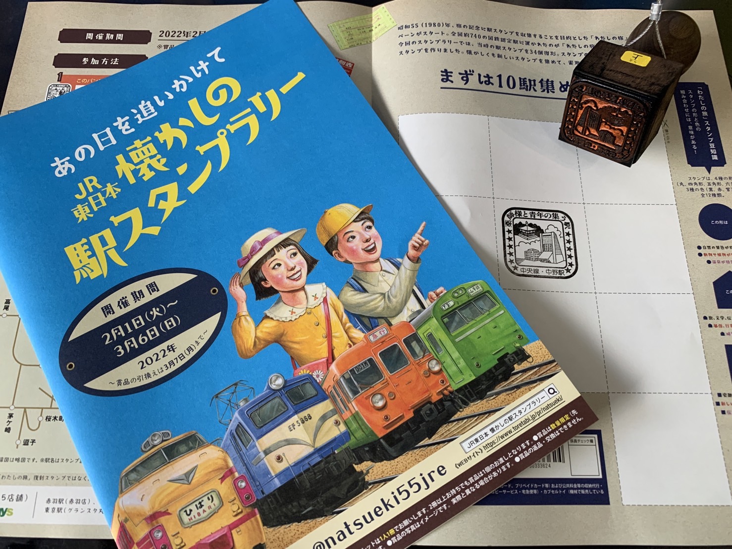 現在JR東日本では、「あの日を追いかけて JR東日本 懐かしの駅スタンプラリー」というイベントを実施しています。首都圏のJR東日本48駅と東京モノレール2駅に「懐かしの駅スタンプ」が設置されています。「懐かしの駅スタンプ」は、1980年に国鉄が実施した旅の記念に駅スタンプを収集することを目的として全国約740の国鉄認定駅に設置された「わたしの旅」スタンプの復刻版だそうです! 東北本線・上野駅には「芸術の杜(もり)と西郷さんの銅像のある駅」、総武線・馬喰町には「国鉄で一番低い駅」など「わたしの旅」スタンプ34個を復刻し、スタンプがなかった渋谷駅や有楽町駅などの16駅には「限定スタンプ」が設置されていまして、JR中野駅南口には「薬師様と青年の集う駅(中央線・中野駅)」というスタンプが設置されています。 スタンプラリーは、駅で配布しているパンフレットにスタンプを押す形。10駅分を集めて赤羽駅・上野駅・蒲田駅・東京駅・中野駅のいずれかのコンビニ「NewDays」で500円以上買い物すると「50駅踏破用スタンプ帳」と「復刻時刻表風オリジナルノート」が数量限定で進呈されます。踏破用スタンプ帳で50駅全てのスタンプを集めると、ゴール駅の「NewDays」で「50駅踏破記念証」(全4種)が数量限定でプレゼント!さらには、応募者の中から抽選で100人に寝台特急「ゆうづる」のレプリカヘッドマークや品川保線技術センターのカットレールなど6種類のグッズも当たるそうです。 中野駅の復刻スタンプにある「中野サンプラザ」は設立当初、「全国勤労青少年会館」という名称でしたが、1973年6月1日のオープン時に一般公募で「SUNPLAZA」という愛称が誕生したそうです。「薬師様」は、中野区新井5丁目にある新井薬師(正式名称=新井山梅照院薬師寺)のことで、大和の国(奈良県)長谷寺を総本山とする真言宗豊山派の寺院。ご本尊は弘法大師空海の手によるとされる薬師瑠璃光如来。1586年に僧の行春が堂宇を建てたことに始まり、1624年には徳川2代将軍秀忠の第5子である和子の方(後の東福門)が眼病を患って同寺院へ参詣し回復。以後「子育て薬師」「眼の薬師」とも呼ばれているそうです。 いつも北口改札から中野セントラルパークに向かわれている学生さんやオフィスワーカーの方々、たまには南口改札から駅を出てみてはいかがでしょうか?改札を出てすぐ右側に「懐かしの駅スタンプラリー」があります!スタンプ台紙に押さずとも、手帳やノートに押してみるのも手ですよ。 そしてガード下にはギャラリーもあります。「夢どおり」ギャラリーには色んな区民団体がさまざまな展示をしていますので、ぜひゆっくり歩きながら覗いてみてください。 「あの日を追いかけて JR東日本 懐かしの駅スタンプラリー」は3月6日までですよ! ■「あの日を追いかけて JR東日本 懐かしの駅スタンプラリー」特設サイト https://www.toretabi.jp/pr/natsueki/